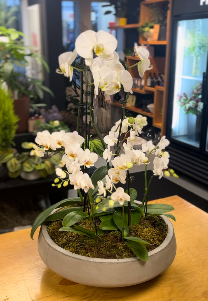 Our orchid planters are living arrangements that make a lasting impression. Each one features a blooming orchid set in a stylish container, creating an easy statement piece for the home or office. Unlike cut flowers, orchids provide long lasting blooms for weeks at a time, making them a thoughtful gift or an elegant way to brighten your own space.